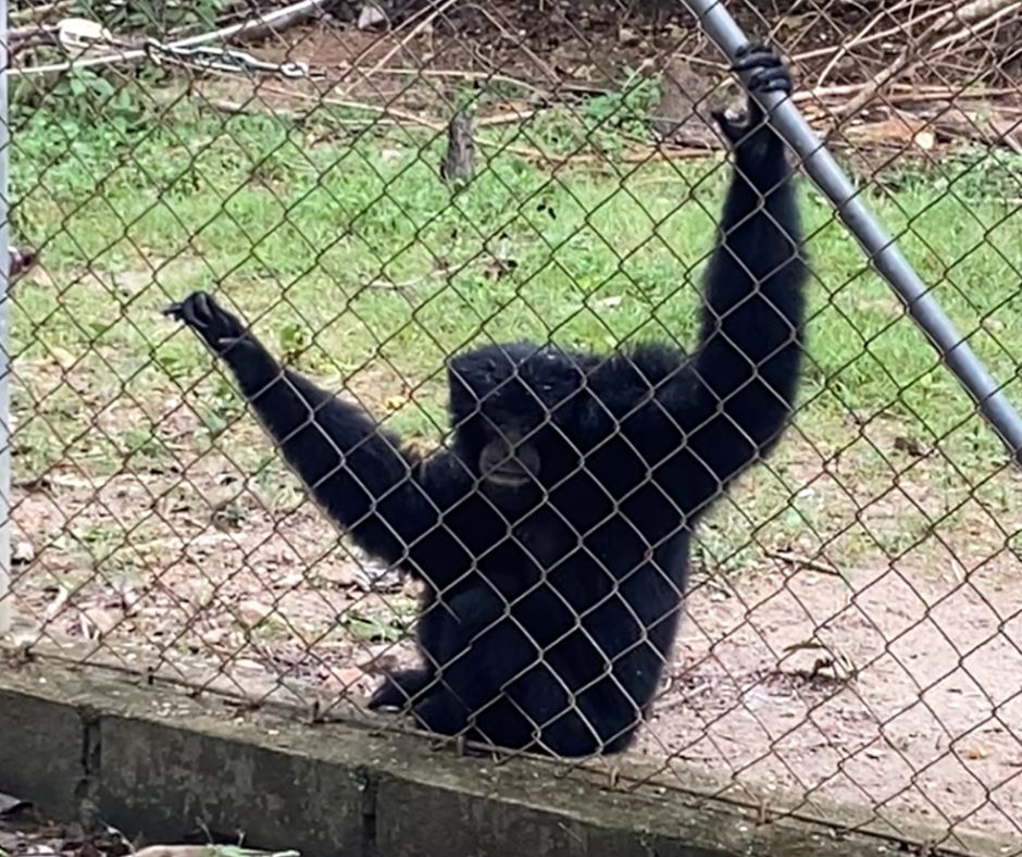 Dette er gibbon apen Mummy. Mummy bodde sammen sin mannlige eier og holdt som kjæledyr fra hun var baby. Mummy hadde et ekstremt tett bånd til sin eier, men etter noen år fikk han seg kjæreste. Mummy ble stadig mer ekskludert og i perioder ble hun satt bort.Det endte med at Mummy ble overlevert til WFFT og Wildlife Rescue Center.