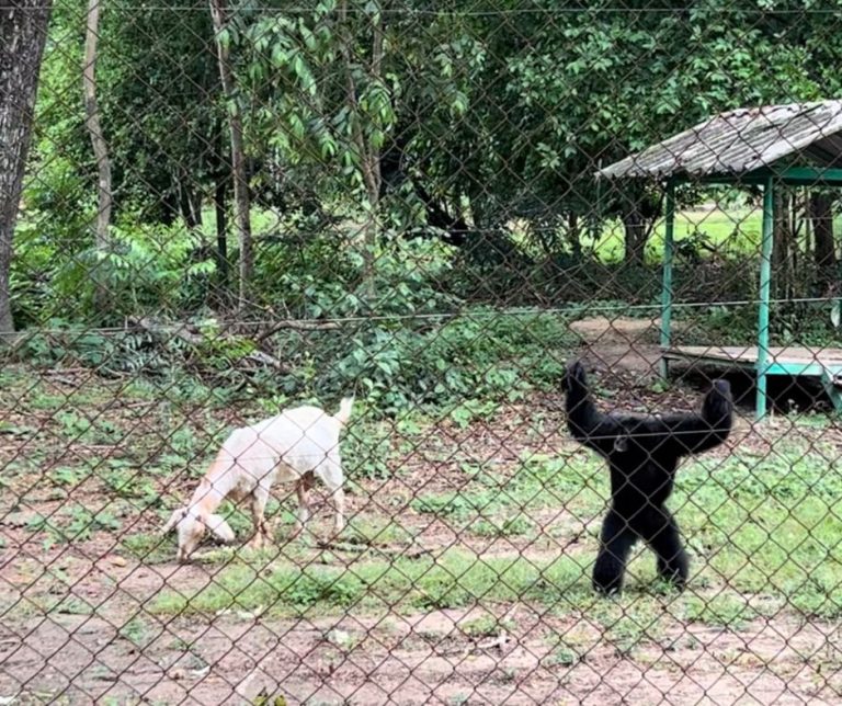 I dag bor Mummy sammen med en geit. De er to svært ulike arter, men har godt selskap i hverandre.