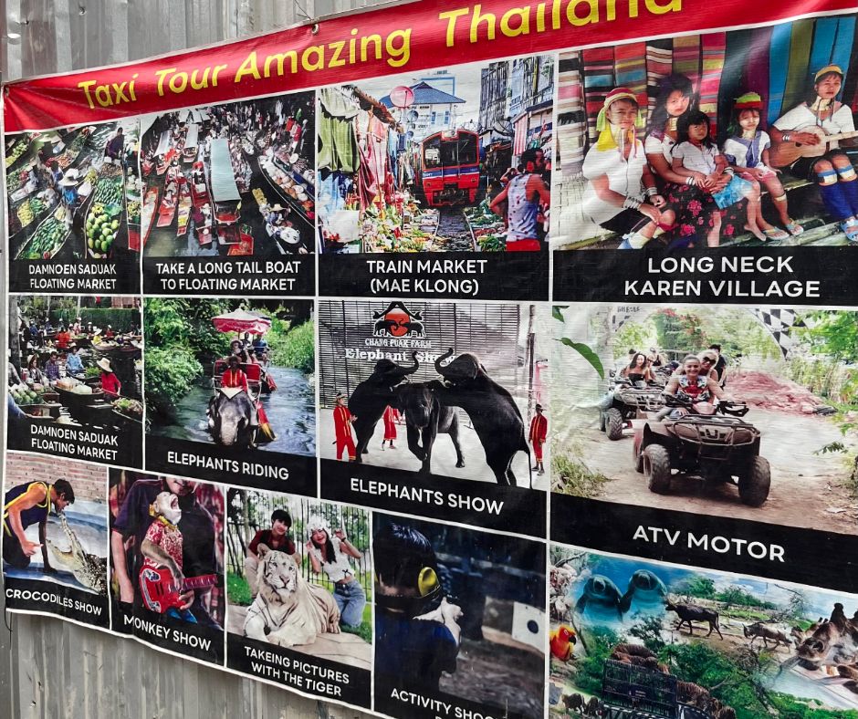 I Bangkoks gater reklameres det for attraksjoner som utnytter ville dyr.